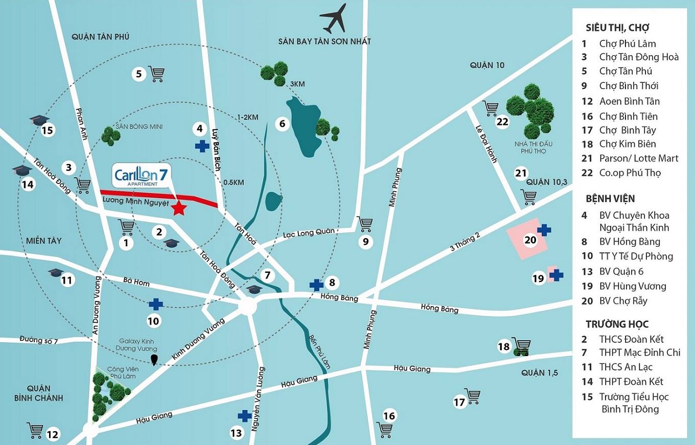 Tọa lạc trên mặt tiền đường Lương Minh Nguyệt, Quận Tân Phú, cách Đầm Sen chỉ 800m. Dự án Carillon 7 sở hữu vị trí tam giác vàng, khi nằm ngay cửa ngõ giao thông kết nối của ba quận đang phát triển: Tân Phú, Quận 6 và Quận 11.