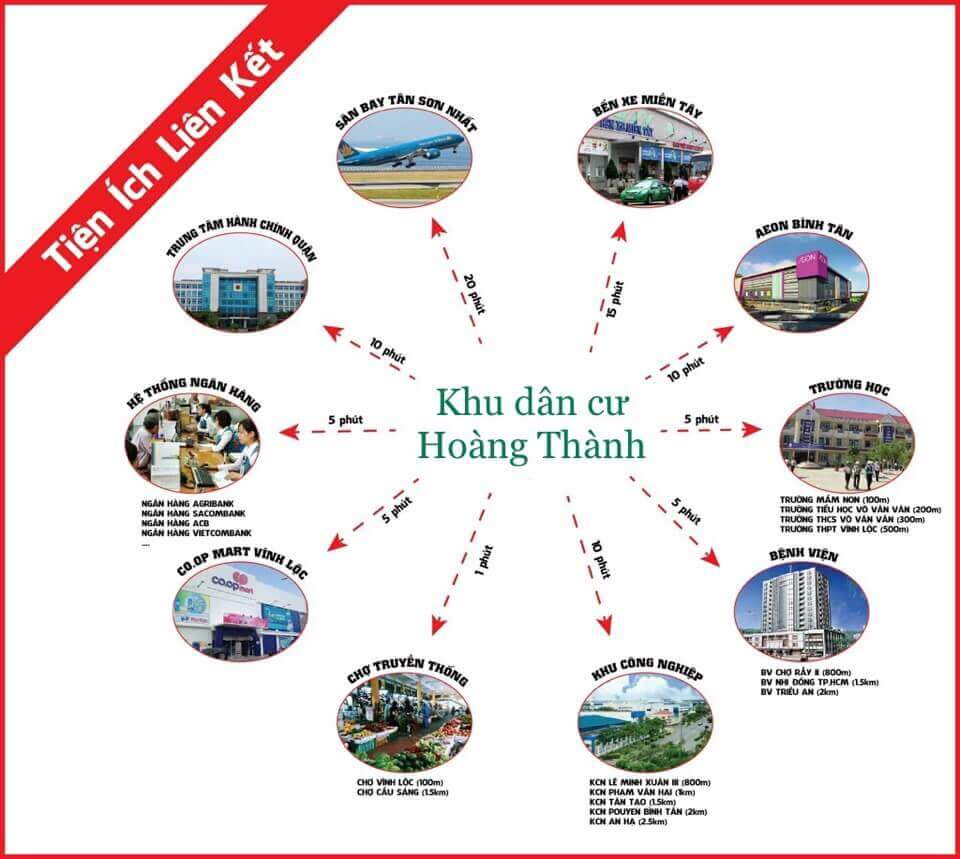 Đất nền Hoàng Thành tọa lạc ngay mặt đường Nguyễn Thị Tú, Vĩnh Lộc nối dài, huyện Bình Chánh, Tp.HCM. Dự án nằm ngay cửa ngõ Tây Sài Gòn, đây là đầu mối giao thông quan trọng để di chuyển vào trung tâm.