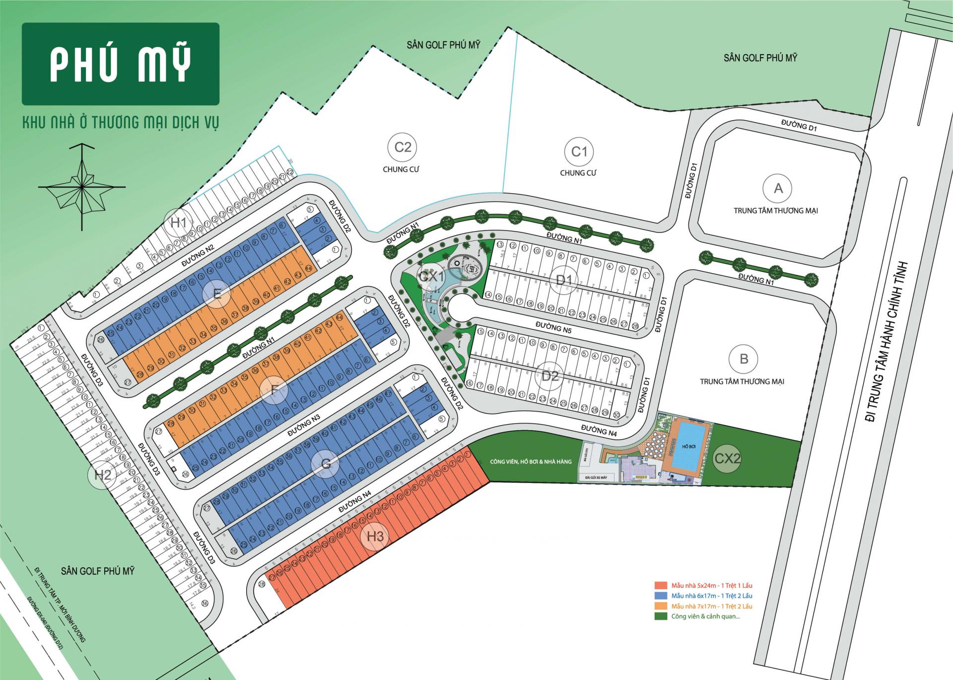 + Khu nhà liên kế 5x20 – 5x24m: 86 căn (số tầng 2-3 tầng)