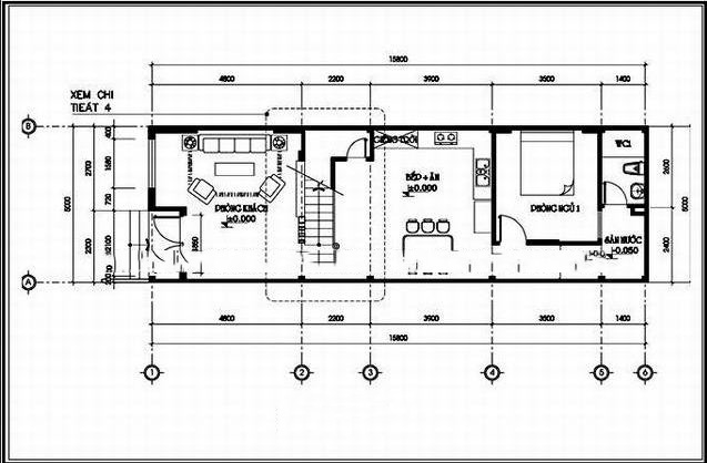 | Mặt bằng thiết kế tầng 1 nhà ống 1 tầng + lửng giá 500 triệu |