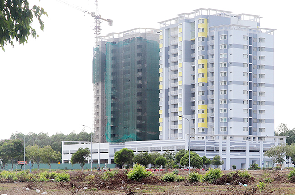 Một dự án căn hộ chung cư ở gần trung tâm hành chính H.Nhơn Trạch đang được triển khai xây dựng. Ảnh: H.Giang