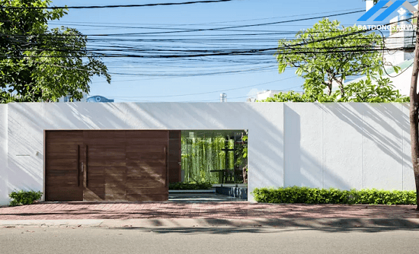 Nhờ có diện tích 470m2 - rộng hơn rất nhiều so với nhà phố thông thường nên nhà thiết kế đã lựa chọn giải pháp nhà trệt đơn giản, hiện đại với diện tích xây dựng chỉ chiếm 40%.