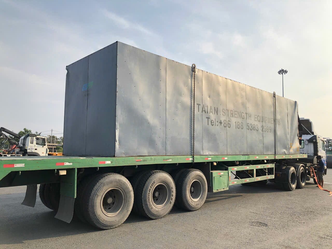 Vận Tải THY nhận được đơn hàng Vận chuyển dây chuyền máy móc cho nhà máy tại Tiền Giang, trong đó có 4 kiện máy nặng 40 tấn /kiện, kèm theo các các kiện hàng quá khổ trong dây chuyền.